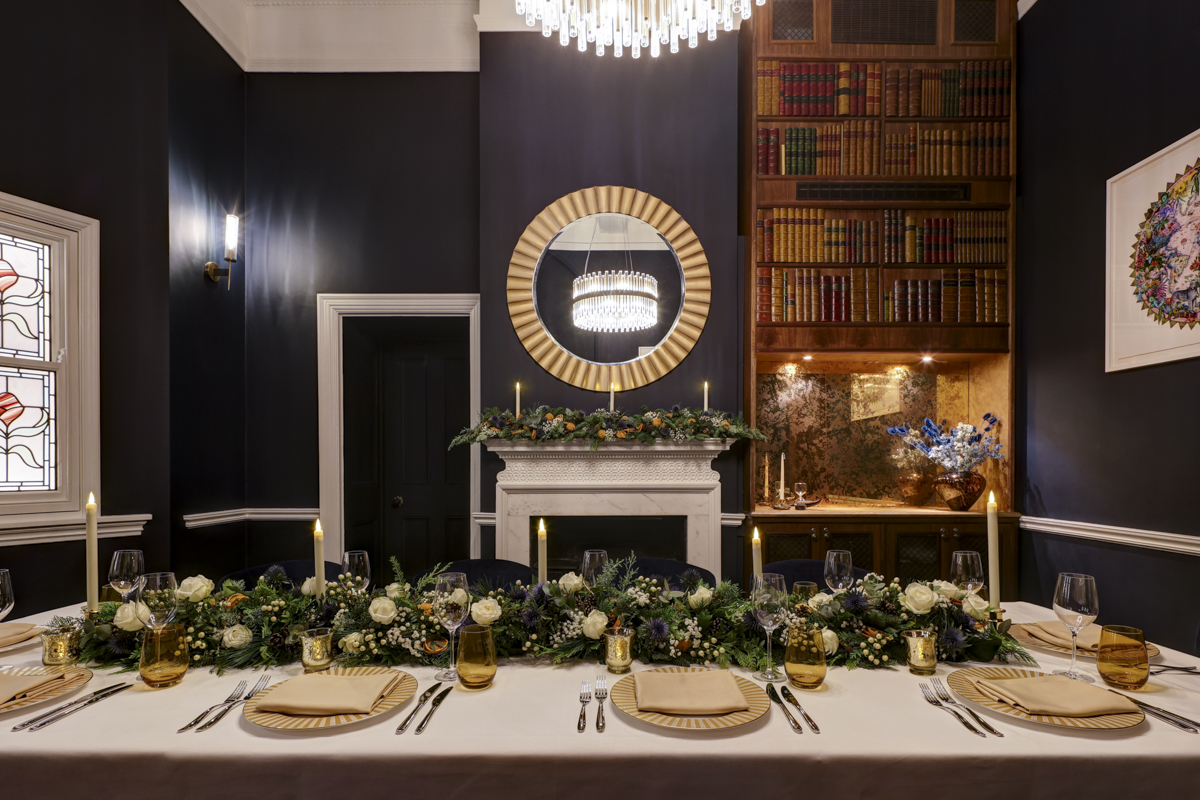 Perfect for intimate dinners and stylish receptions, this characterful space accommodates up to 60 guests standing or 32 seated, with a fitted bar and seamless flow into the adjoining Drawing Room.